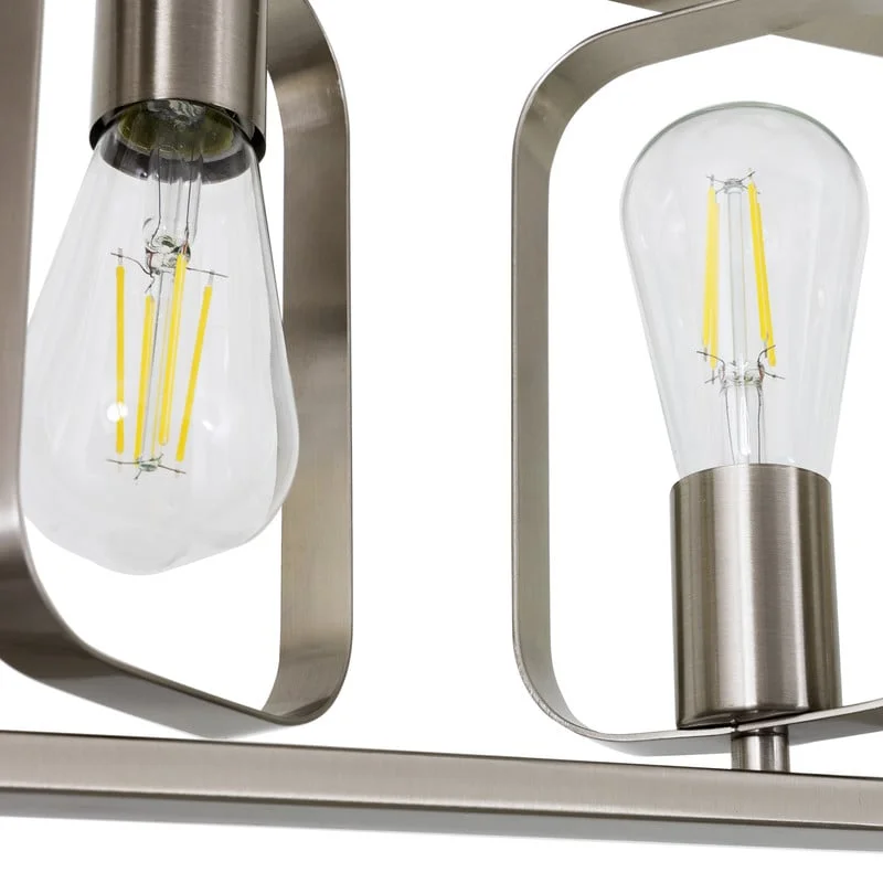 moreThis versatile light works in nearly space. The Elliptical Collection features a series of symmetrical ovals inside an oval, it fits nicely with a kitchen island, bar or even over a pool or gaming table. The swiveling heads allow you to open the fixture up to expose the surrounding frames. The polished nickel finish can be used with any styles, from contemporary to nautical blends. Maximum hanging height is 110 inch. Requires (7) 60 watt bulbs**Not included**Shown with Edison Bulbs**Hanging weight 11 lbs.